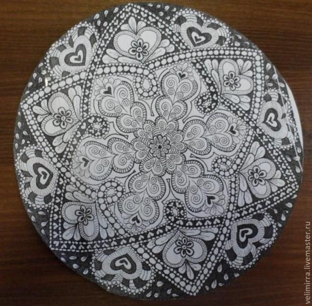 Рисовать я так и не научилась, поэтому основу для тарелки я взяла из интернета (к сожалению автора сего орнамента я не знаю)
