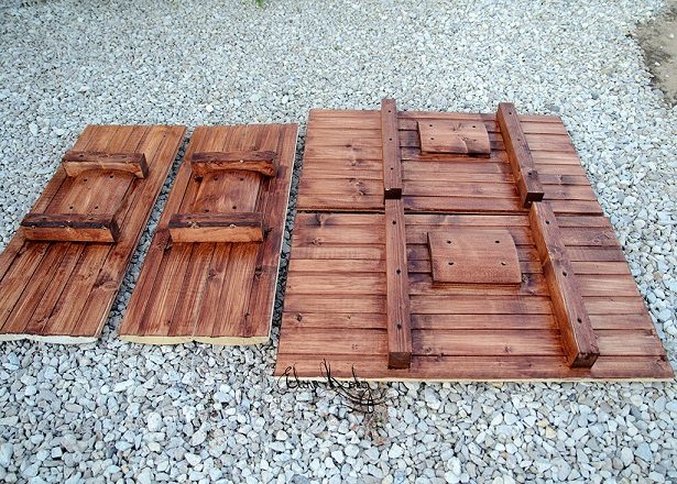 Сверху на бруски устанавливаем подходящие по размеру металлические поддоны (благо они у нас были, но за отсутствием таковых, можно сделать деревянную решетку).