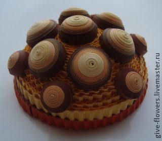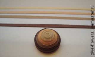 Приступаем..?! На панцире 7 больших кружочков: каждый скручен из четырёх целых полосок любого выбранного вами оттенка (хоть серо-буро-малинового в крапинку..). У меня же это оттенки коричневого. Полосочки склеиваем друг с другом и накручиваем либо на специальный инструмент для квиллинга, либо на зубочистку с прорезью. Скрутили шайбочку, слегка выдавили и обязательно изнутри хорошенько промазали клеем.