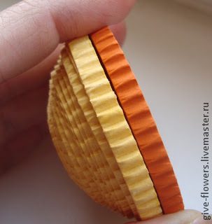 Для ножек, а их у нашей красавицы ( как ни странно ) четыре, тоже понадобится 4 полосочки + небольшой отрезок гофробумаги, для окончательной доработки… Так же скручиваем все полосочки, слегка распускаем шайбочку, чтобы легче было придать форму капли, вдавливаем серединку и промазываем клеем.