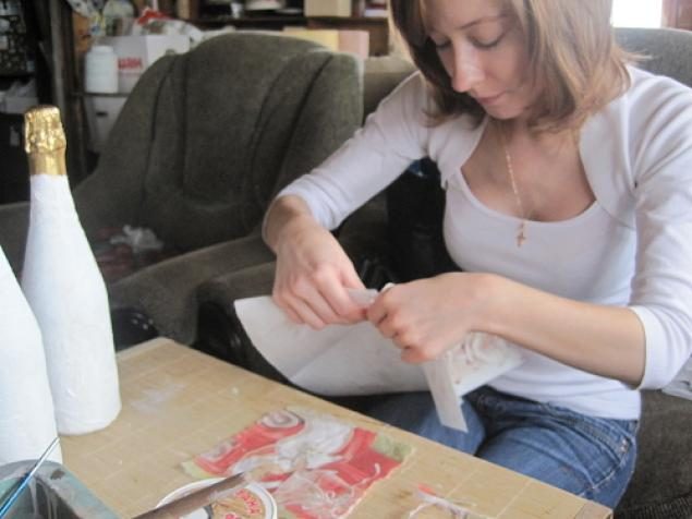 Декор бутылки в технике декупаж