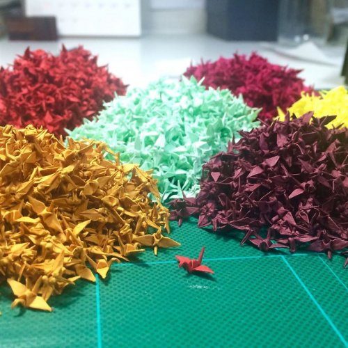 Вдохновлённая легендой про 1000 журавликов и рассказом Садако Сасаки (Sadako Sasaki), она складывает сотни крошечных оригами журавлей, которые впоследствии становятся кроной изящных деревьев бонсай различных размеров и стилей.