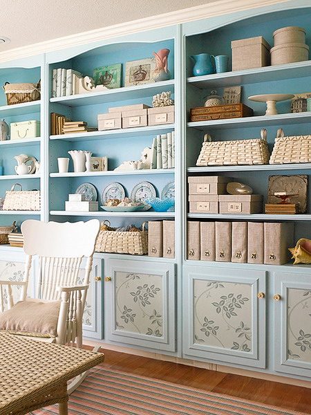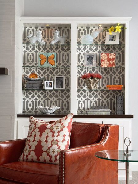 А теперь перейдем к задней части шкафа, на фоне которого располагаются аксессуары, книги или посуда.