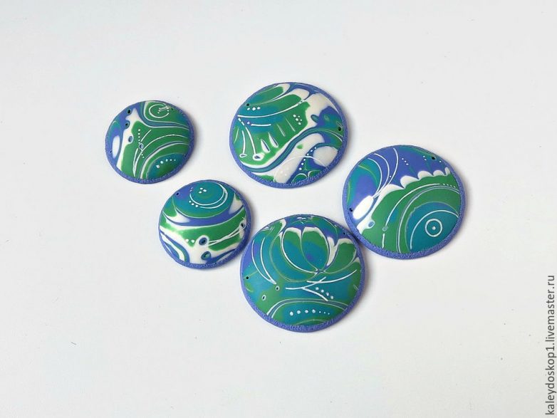Вырезаем основы для бусин круглыми формами разных диаметров. Выбираем те участки, где узор нравится больше.