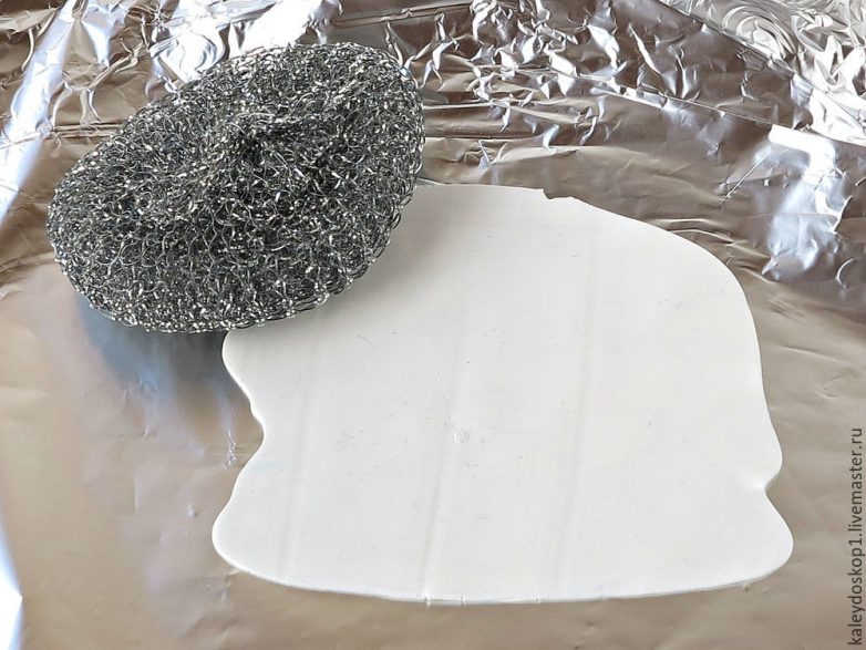 Чтобы изделие было легче снимать, кладем нижний пласт глины на фольгу.