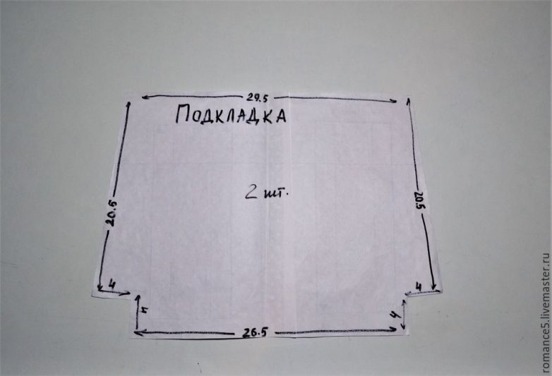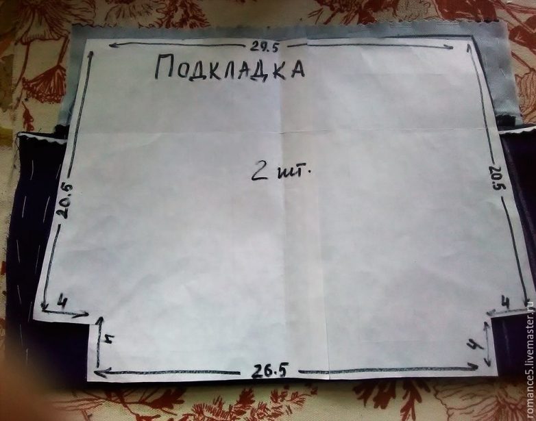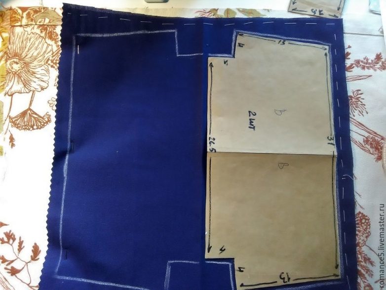 Отрезаем 2 куска ткани для подкладки размером 40х40см. Обводим выкройку. Используем только один кусок ткани. На нем будем делать карман.