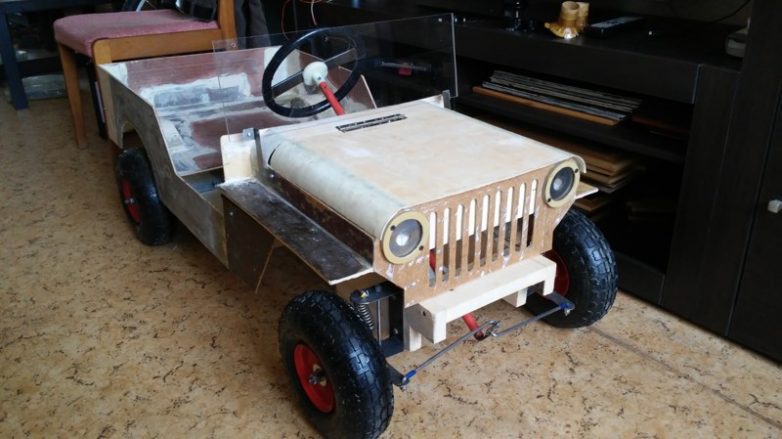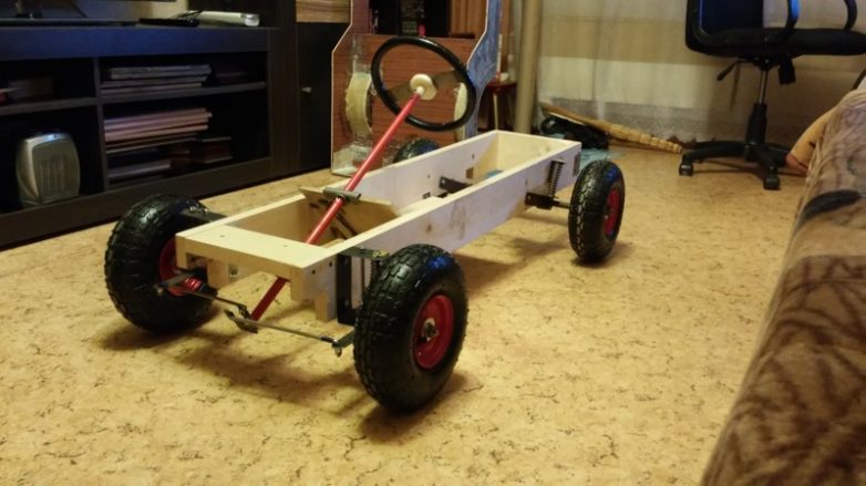 Малышня сказала: «Хотю масину!» Конструкторское бюро «На коленке» в результате невероятного напряжения сил и средств, проведя множество сложнейших расчетов по методике: «Дааа, нормааааально, должно держаться!!», используя самые передовые материалы из того, что было под рукой ))) спроектировало и изготовило транспортное средство.