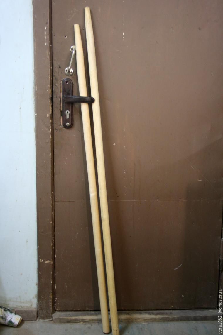 1. Деревянные черенки для грабель и лопат. Диаметр 3 см. На ближайшем рынке 2 штуки обошлись мне в 100 рублей.