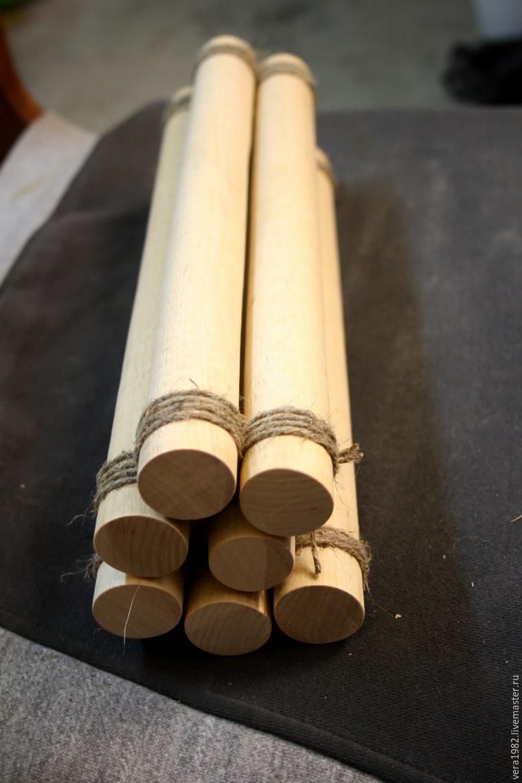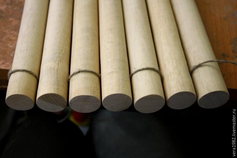 Дальше ровно раскладываем все заготовки и пропускаем веревку между всеми.