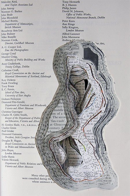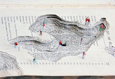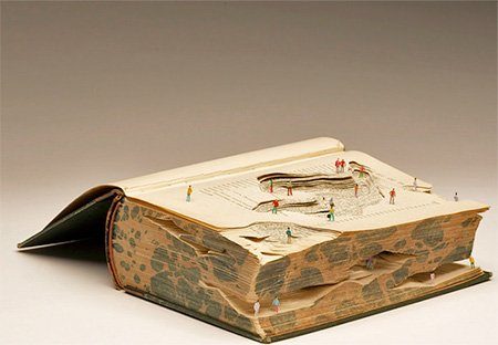 Британский художник Кайл Киркпатрик (Kyle Kirkpatrick) создаёт миниатюрные диорамы, превращая в ландшафты искусно вырезанные старые книги.