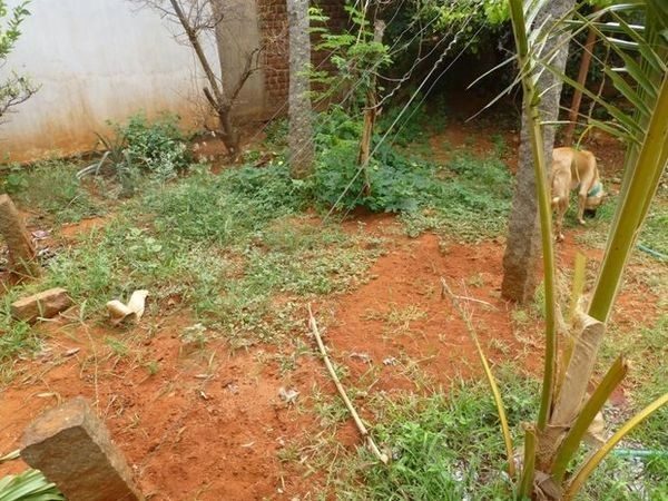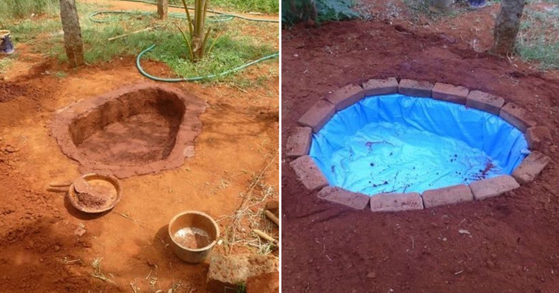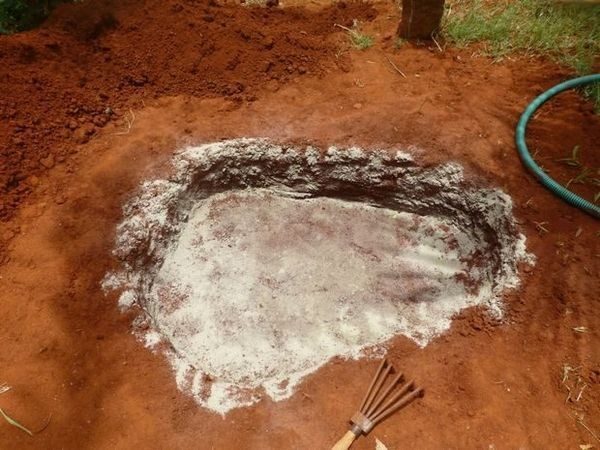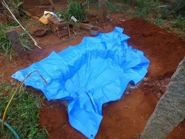 Землю из ямы равномерно раскидываем рядом (на высоту кирпичей)