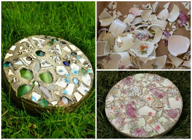 Плитки для дорожки или просто оригинальный садовый декор из битого стекла и черепков.