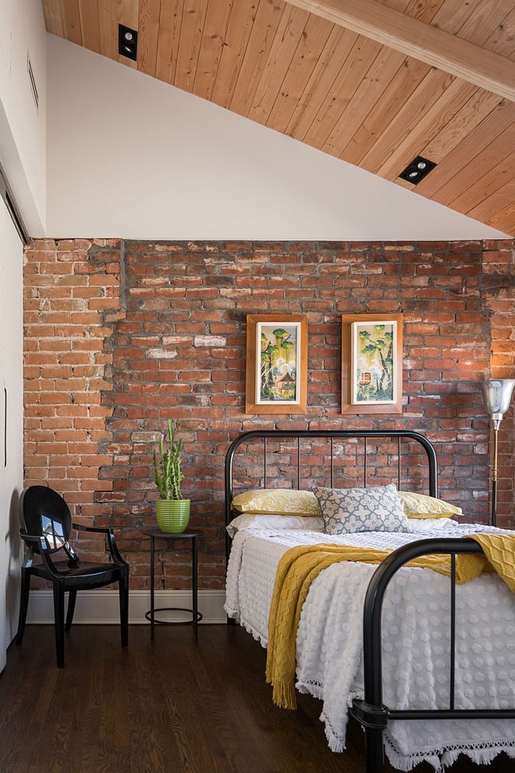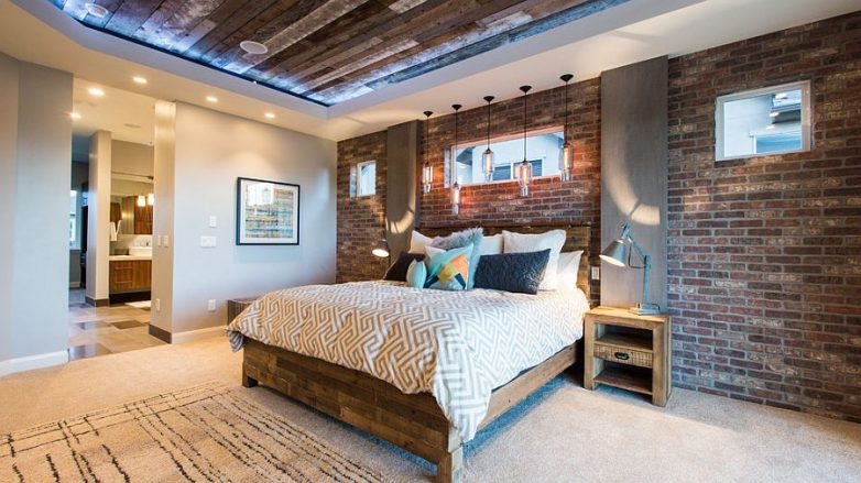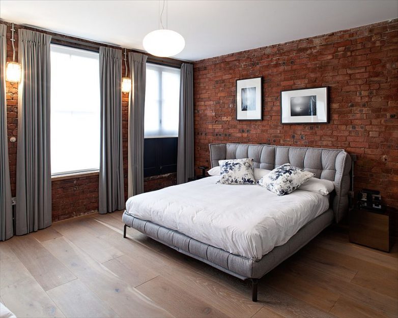 Часто кирпичные стены, сохранившие первозданный вид, относят только к свободному и непредсказуемому стилю лофт. Но на самом деле кирпичная отделка может украсить любую современную спальню. Не верите — смотрите сами.