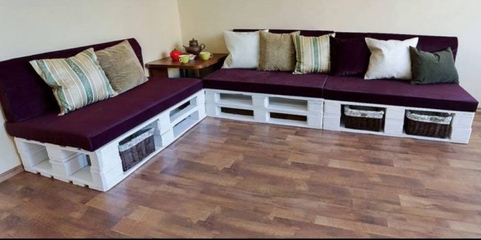 Грузовые поддоны могут стать отличной основой для дивана. С формой и размером можно легко экспериментировать.