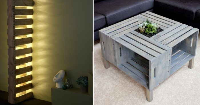 Любителям оригинальных светильников стоит обзавестись парочкой грузовых поддонов для создания настоящих шедевров.