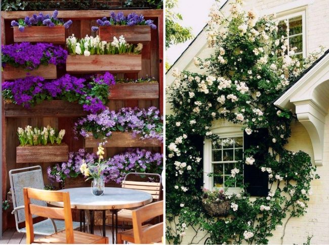 Выигрышным будет использование цветов в каком-то одном месте — на стене дома или забора.