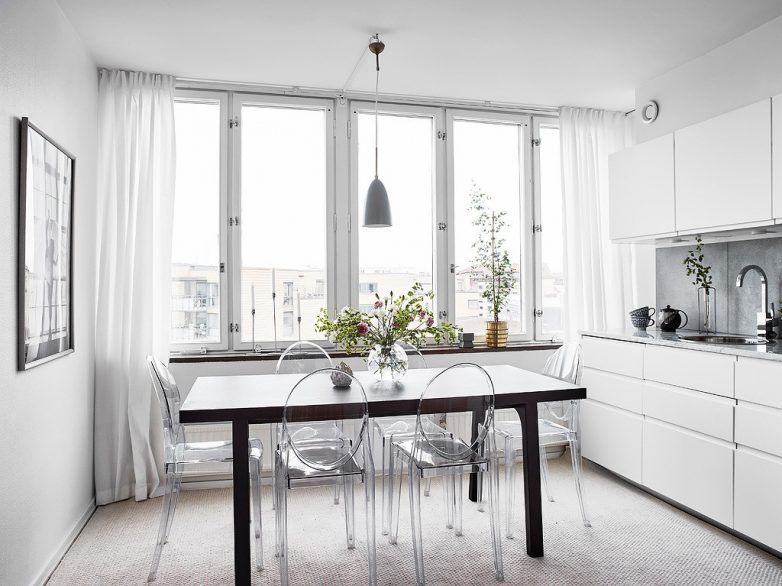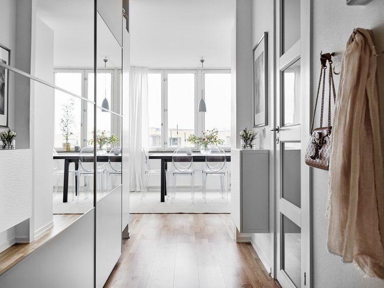 Основным мотивом интерьера этой однокомнатной квартиры являются чистые линии и простота. Дизайнеры культивируют в декоре искусство минимализма в шведском стиле. Главной задачей становится удаление всего лишнего и нефункционального.