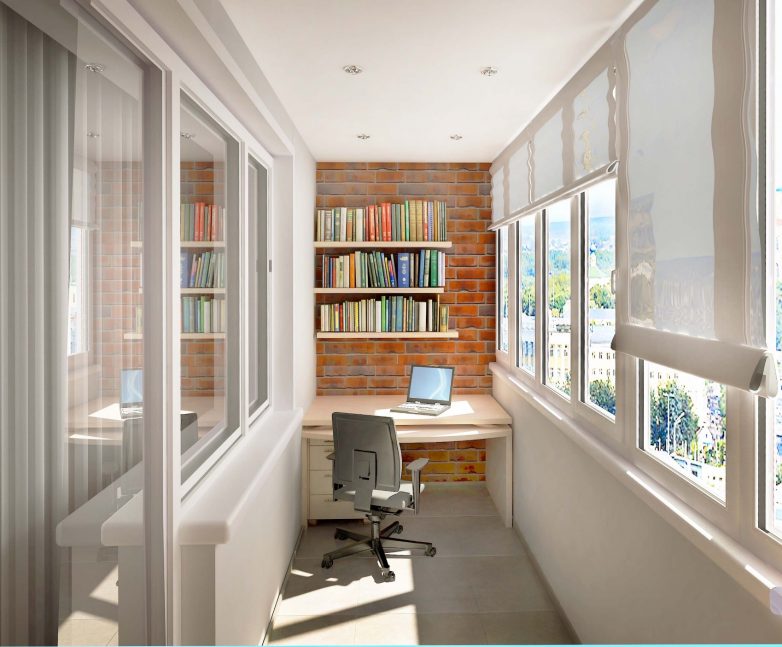 Но самый интересный вариант современного человека, который все свое время посвящает работе, – это трансформация балкона в рабочий кабинет