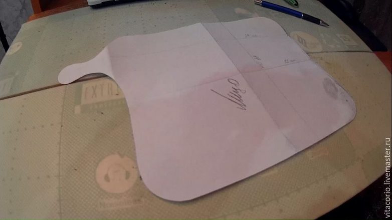 Каких-то конкретных размеров выкройки здесь не будет. Для примера будут видны размеры выкройки на видео. Я вырезал сначала из обычной бумаги выкройку, затем переносил уже на картон.