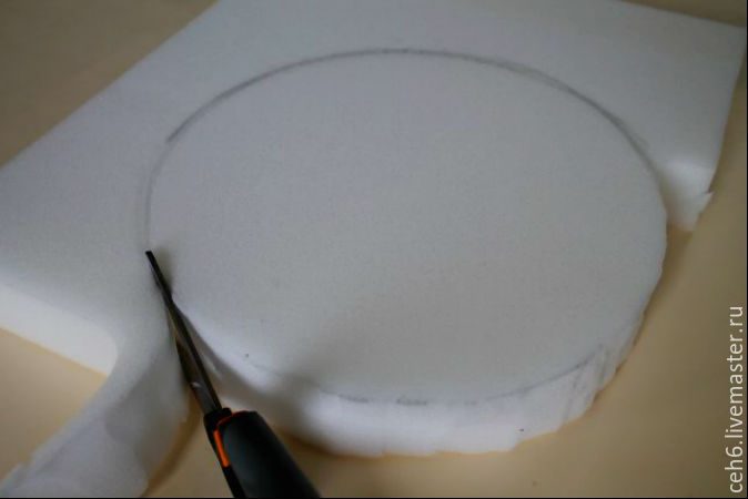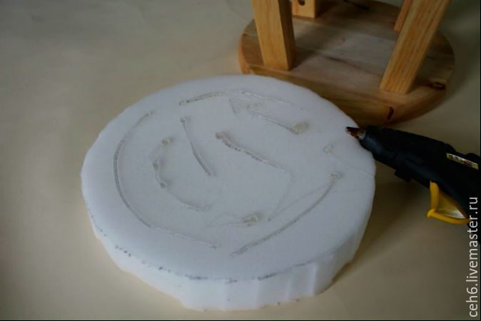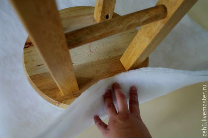 Переверните стул сиденьем вниз и обведите на синтепоне контуры сиденья.