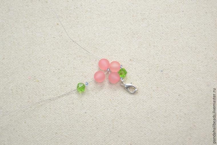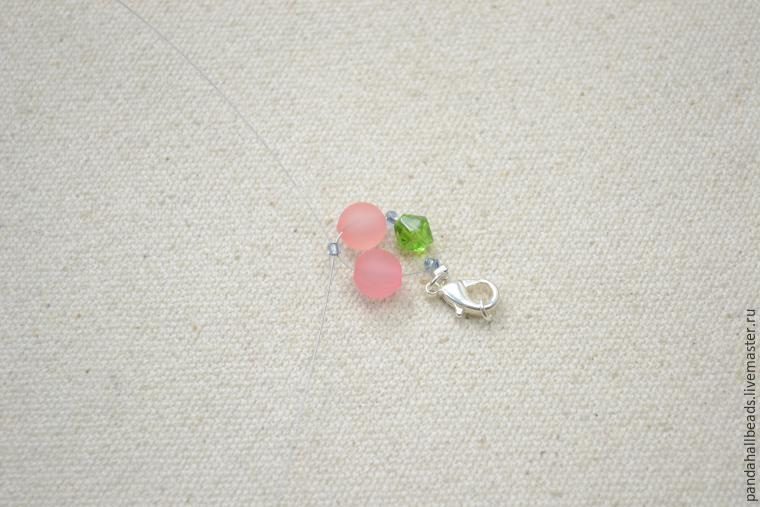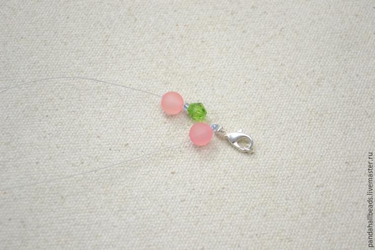 1. Отрезаем тросик длиной примерно 80см. Продеваем его через колечко лобстера.Обратите ваше внимание на то,