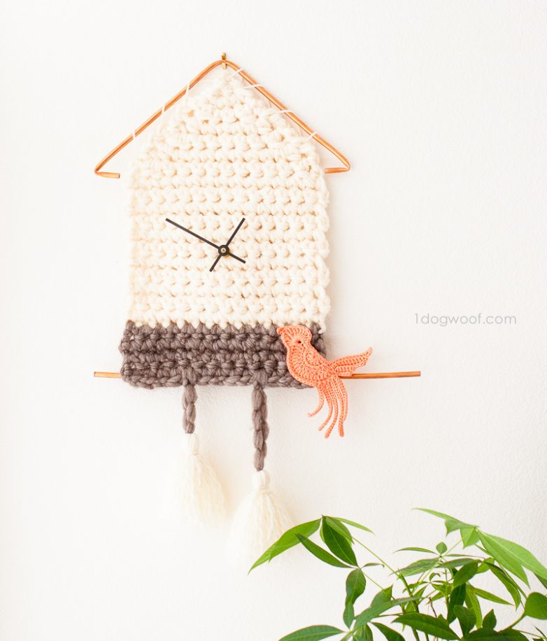 Милые вязаные часы с кукушкой.