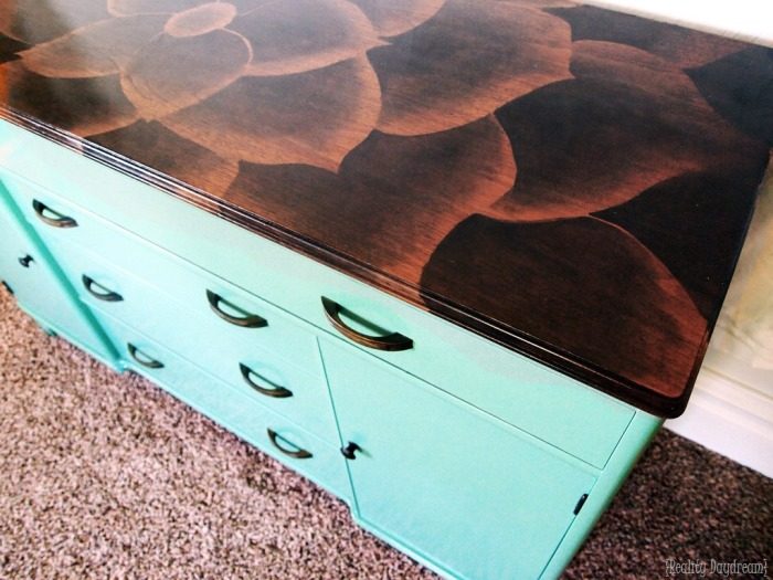 Все началось со старого комода. Бэт захотела преобразить его, но если просто выкрасить столешницу обычной краской, то тогда не было бы видно рисунка натуральной древесины. Горизонтальную поверхность отшлифовали, а затем Бэт использовала свою методику.