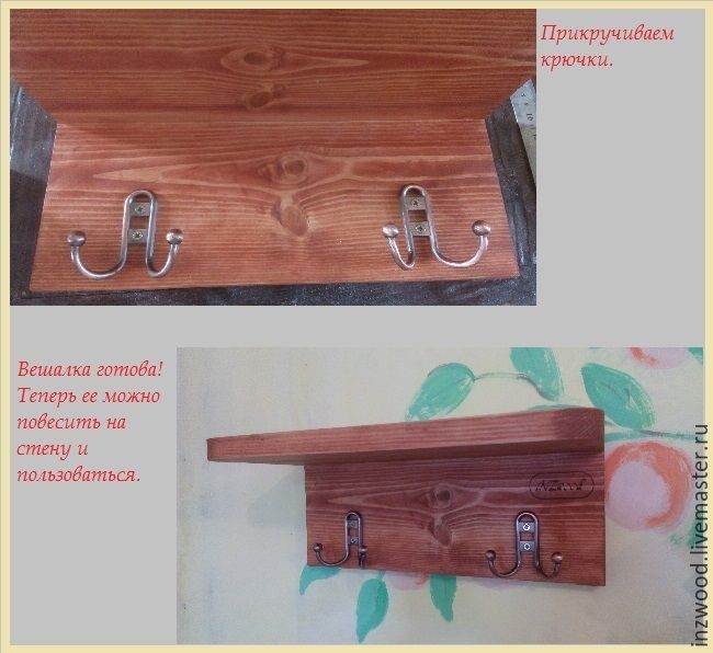 6). Стамеской делаем углубления для подвесов и прикручиваем их. Покрываем заготовку маслом для дерева и оставляем сохнуть на 24 часа.