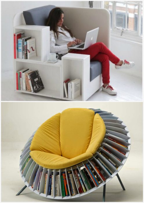 Оригинальные кресла с полками для книг — это прекрасная возможность совместить в себе два важных элемента мебели, без которых сложно представить интерьер современной квартиры. К тому же, такие кресла выглядят очень стильно и, несомненно, покорят сердца книголюбов.