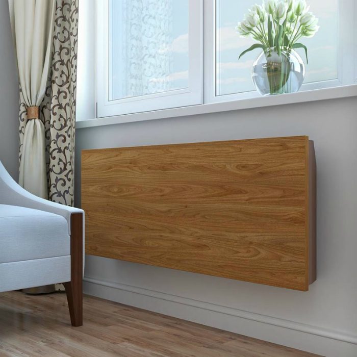 Стильный деревянный экран на батарею поможет скрыть неприглядный предмет обстановки и значительно улучшить внешний вид комнаты. Кроме того, такое решение выручит людей, у которых зимой топят слишком сильно.