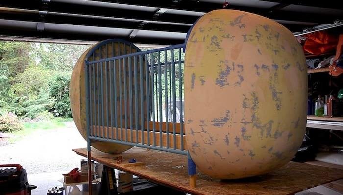 Строительство этого предмета мебели было небольшим подвигом. Даже с помощью друга, который научил Адамса основам обращения со стеклопластиком, ему потребовалось 90 часов и 1250 долларов на материалы. Однако результаты труда Роба впечатляют: сине-желтая подлодка не только поражает взор в течение дня, но и даже светится ночью.