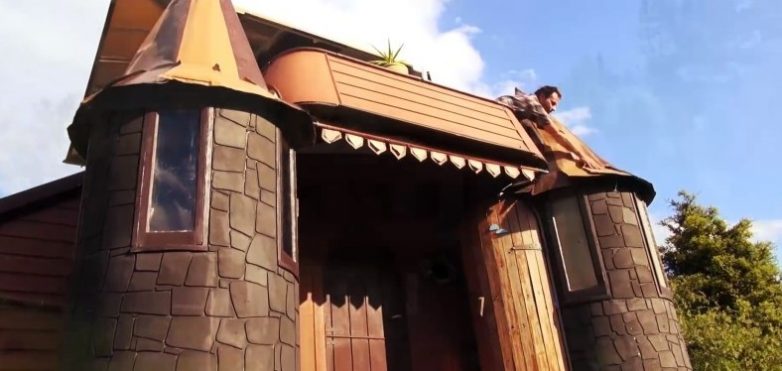 И вот что у них получилось. Термин «дворец» здесь вполне уместен — сооружение многоэтажное, со всей сопутствующей атрибутикой, выдержанное в фентезийном стиле. Здесь есть и камин, и терраса, и СПА-зона — скромная, но уютная. Новозеландская семья всецело довольная своим детищем.