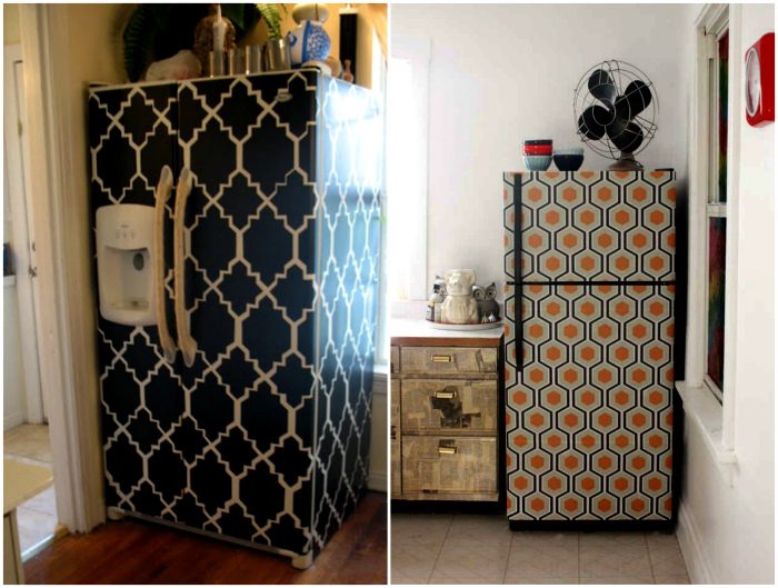 Холодильник, едва ли, можно назвать стильной деталью обстановки, но с помощью грамотно подобранной самоклеящейся пленки его можно превратить в самую настоящую изюминку кухни.