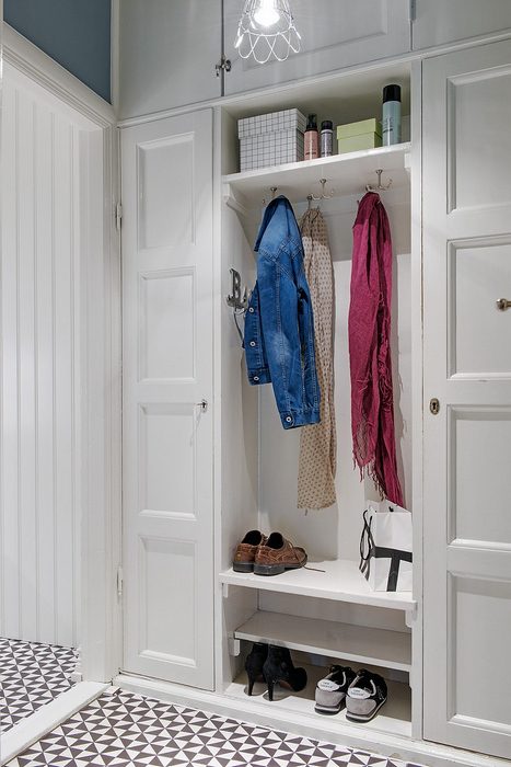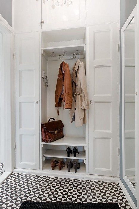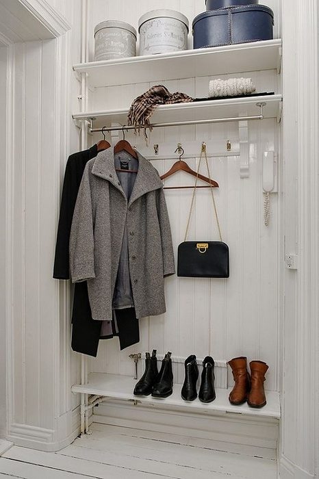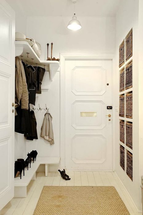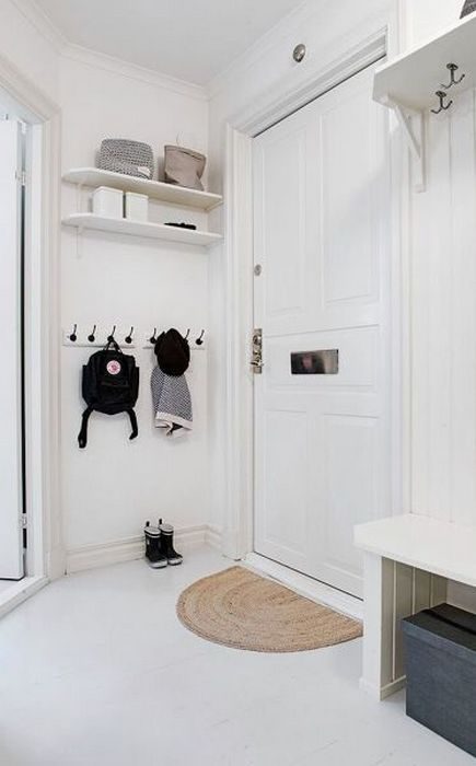 Белый цвет идеально подходит для оформления маленькой прихожей.