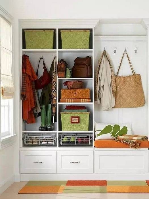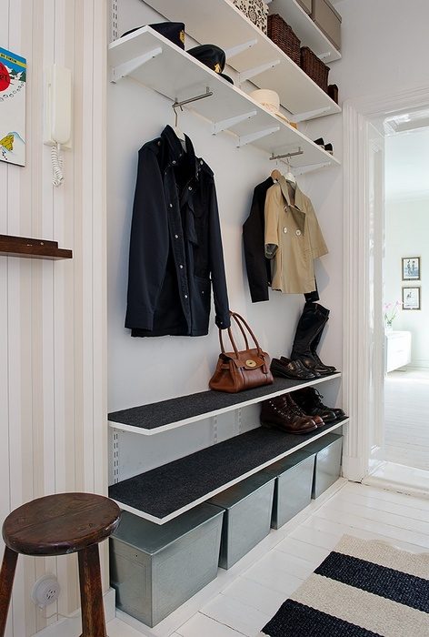 В небольшой прихожей особенно внимательно нужно следить за порядком. Когда обувь стоит где попало, когда на полу отпечатаны грязные следы, когда вешалка завалена вещами – создаётся неприятное впечатление, комната кажется меньше, чем есть на самом деле.Беспорядок вредит любому интерьеру и не делает его краше, какие бы обои или напольное покрытие не использовали для его оформления. Поэтому заранее продумайте системы хранения. Вовремя убирайте сезонные вещи, не храните летние шляпы на полке, когда за окном уже холодно. Следите за чистотой, в маленькой комнате это не сложно.