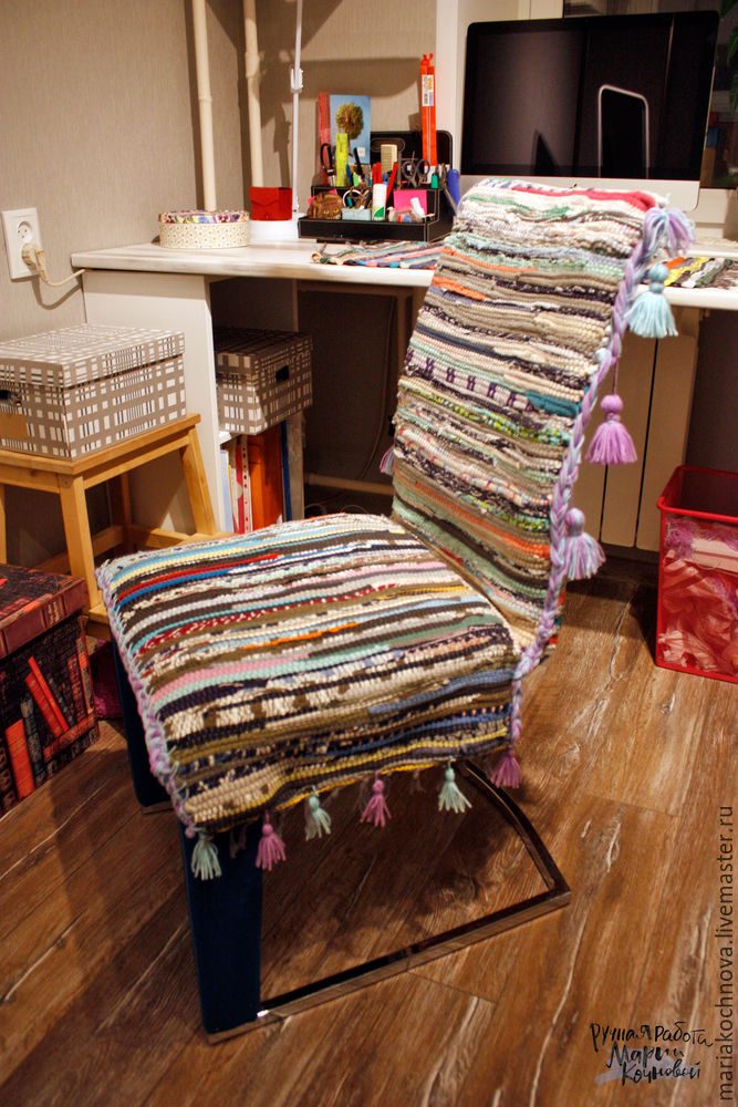 Забираем ковер, кладем на стул и пришиваем к другому коврику у основания спинки.