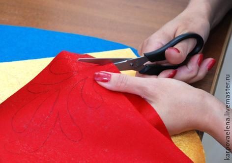 Аккуратно вырежем детали из стигис-текстиля по контуру. У меня это кораллы, водоросли и камешки на морском дне.