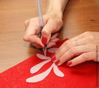 Наложив детали из кальки на изнаночную сторону стигис-текстиля (ту, что обработана термоклеем), обведем контуры деталей шариковой ручкой.