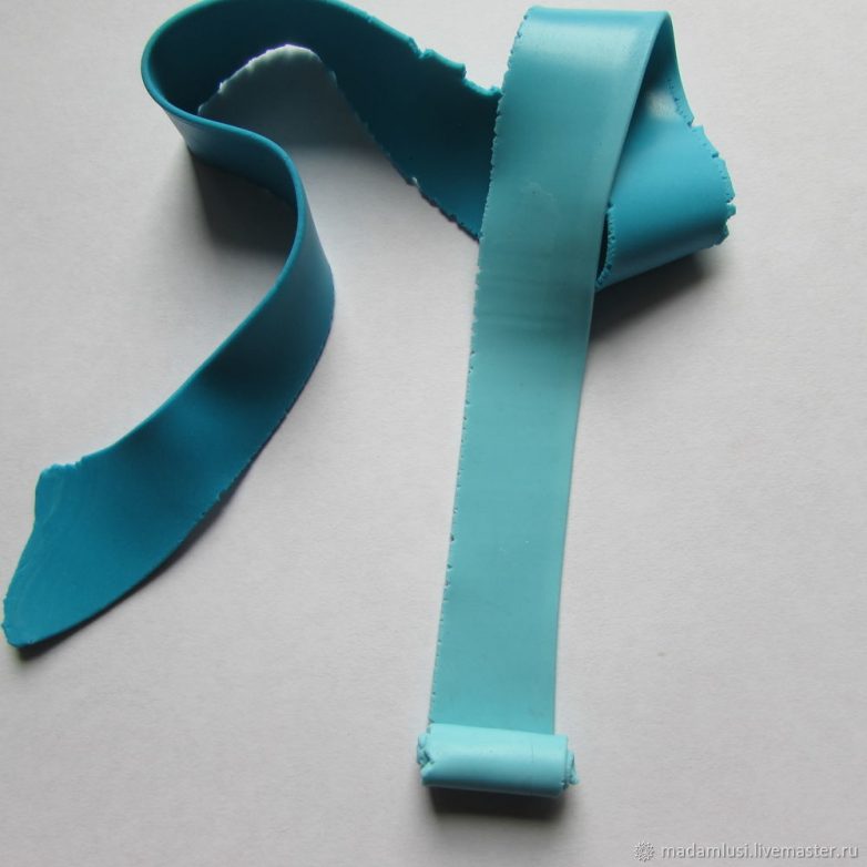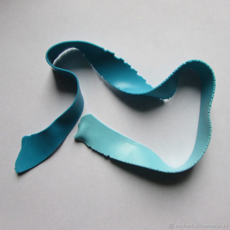 Если у вас нет желания возиться с перьями с переходом цвета, можно сделать проще — возьмите глину цвета отличного от основного и сделайте то же самое, только с однотонной колбаской. А можете придумать и что-нибудь другое.