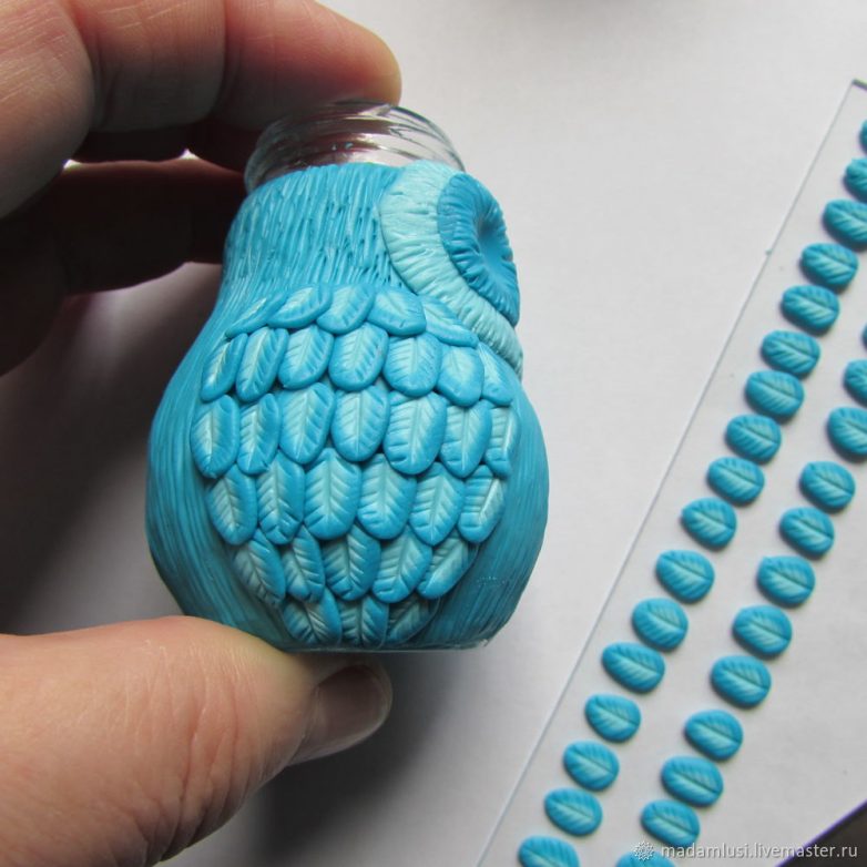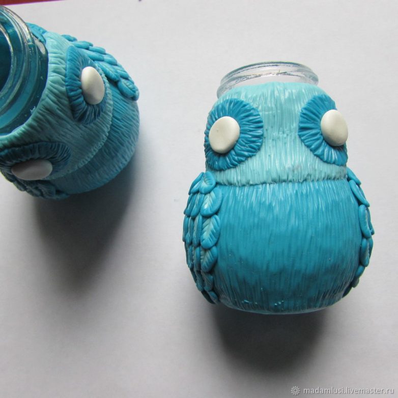 Последние штрихи — возьмите иглу и пройдите по всей поверхности совы чтобы устранить мелкие упущения, если они были. А теперь ставим совушек на запекание, на 30 минут и на температуру указанную на упаковке своей глины. Пока совушки остывают, мы молча ими любуемся. Можно покрыть лаком. Не знаю как у вас, а у меня вот что получилось: