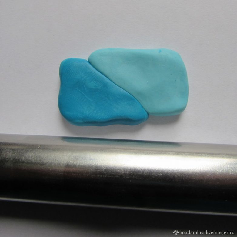 1. Глина полимерная — белая, черная и три оттенка бирюзового цвета.