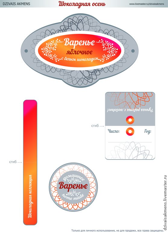 Я сделала набор вот таких этикеток и бирок для двух видов варенья с шоколадом.