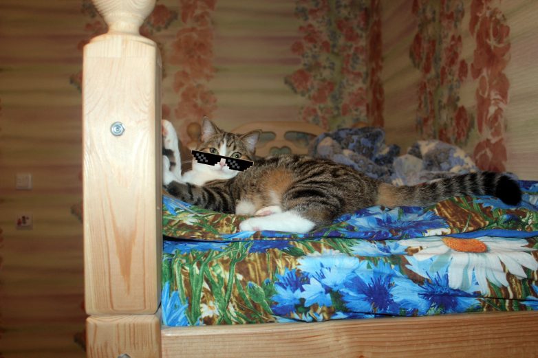 Где-то за месяц работ по вечерам после работы и выходным я сделал кровать, получил ценный опыт, занимаясь увлекательным процессом создания вещи (от идей до воплощения), сэкономив семейному бюджету не одну тысячу рублей, а так же вдохновился на новые свершения. Спустя пол года лютой эксплуатации ядерными детьми (семи и трех лет) кровать показала себя с лучшей стороны, не заскрипело и не расшаталось ничего, я иногда сплю наверху (прячась от своих близких). КотЭ наш тоже облюбовал второй этаж, когда детей нет дома, он дрыхнет там развалив своё пушистое пузо)).