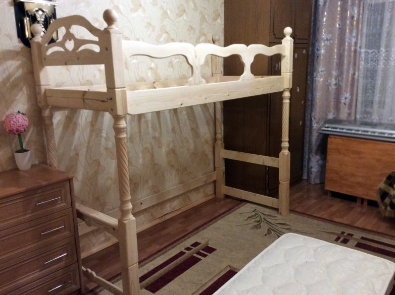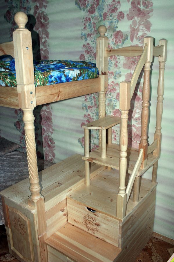 Всё началось с проекта, исходные данные были следующие: кровать должна быть компактной, надёжной, красивой, разборной и желательно недорогой. Оставался открытым вопрос – куда девать раскладной диван-малютку? Посмотрев в интернете многочисленные проекты, решил сделать односпальную кровать с высоко поднятым спальным местом, а внизу разместить диванчик, подъём на «второй этаж» решено было сделать из ступеней-полок с перилами.