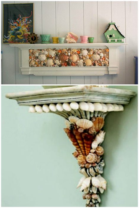 Обычные полки, декорированные ракушками, преобразятся, заиграют абсолютно новыми красками и станут настоящей изюминкой любого интерьера.