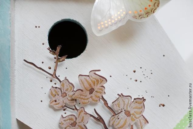 Немного мелких брызг коричневой краской и скворечник готов!