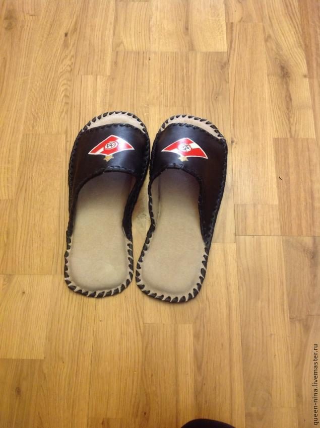 А вот другие тапочки для болельщика «Спартака». Рисунок наносила акриловыми красками и покрывала акриловым лаком.