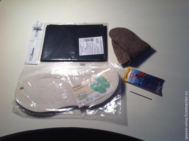 Очень долго я искала материал, который можно использовать в качестве стельки, чтоб был не слишком мягкий или жесткий и держал форму. И нашла! Опробовала — удобно. Но если кому-то материал покажется неубедительным, можете смело выбросить его и использовать в качестве стельки толстый войлок, предлагаемый в других мастер-классах. Ну, хватит разговоров, приступим к делу. Нам понадобятся: