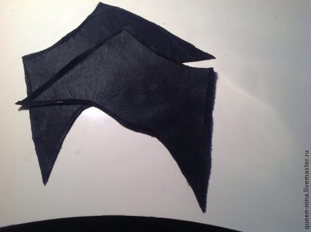 Далее делаем 2 детали выкройки верха тапок из флизелина, они должны быть меньше основной детали на 1см по всем краям. Приклеиваем флизелин горячим утюгом через сухую марлю или тряпку к наружной детали верха.