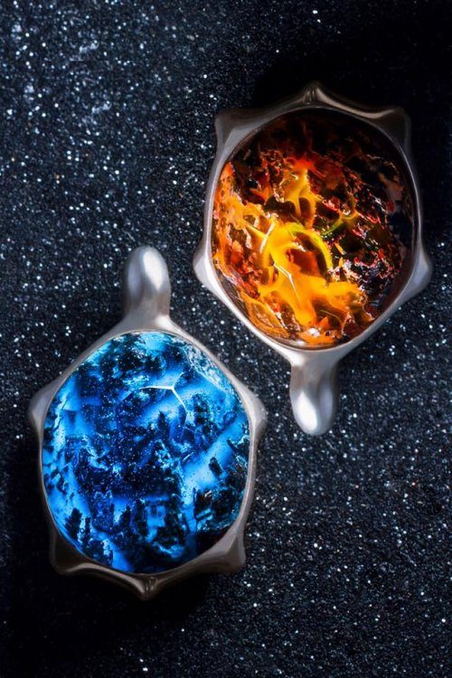 Известный своими изысканными, многогранными «каменными» кольцами, он создаёт изделия, внутри которых можно увидеть миниатюрные пейзажи фантастических мест.